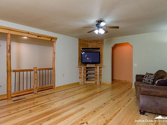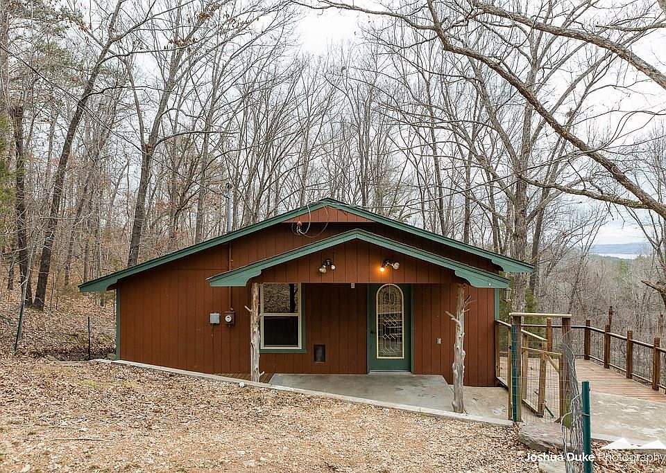 ROCKY BRANCH LAKE CABIN. 3/2 complete re-do lakehouse with view. 5" wide plank pine flooring, granite counters, rustic interior. Solid concrete block walls, energy efficient w/ rural water & septic. Lots of storage, 35-amp RV hook-up, 2 heat sources (dual heat heat pump & propane gas stove), covered deck, & spacious floor plan. Water heater '17. Roof '08, oversized garage - room for shop inside. 25 minutes from downtown Rogers - 5 minutes to Rocky Branch boat ramp access. Well-maintained & move-in ready.