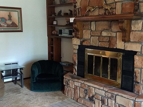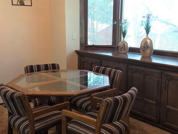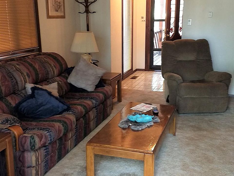 2 car garage Townhouse has been well loved but not much used by original family owners. Beautiful Rock, Wood burning Fireplace; New Trex Deck on back looks out onto large commons area, trees, & mountains. Nice woodwork but home has not had a lot of updates. Level entry to Main Level (LR, DR, Kit, Utility, 1/2 bath, garage)Upper Level is 3 bedrooms & 2 full baths.