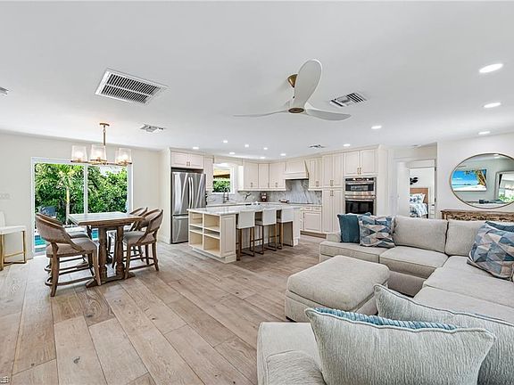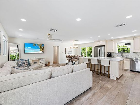 This beautifully updated Collier County waterfront home is the perfect blend of luxury, location, and lifestyle! Boaters’ dream! Enjoy direct Gulf access with no bridges and a community boat ramp just a few streets away. Plus, NO HOA restrictions! Located in the sought-after Bonita Shores boating community, this home is just minutes from Barefoot Beach, shopping, restaurants, grocery stores, fitness centers, and some of the best white sandy beaches. Whether you prefer to walk, bike, or boat, paradise is always within reach. Inside, this stunning home features a completely repainted interior and exterior in the past few weeks, adding a fresh, modern feel. The designer-renovated interior boasts wood flooring in the main living areas and master bedroom, with tile plank flooring in the guest bedrooms and office. The chef’s kitchen is a showstopper with custom cabinetry, quartzite countertops and backsplash, stainless steel appliances, and a large island with bar seating. Step outside to your private newly built pool with sun shelf and built-in water features, all perfectly complemented by a cypress-lined covered lanai that connects the pool area to the waterfront. The home is also storm-ready with a new roof, impact windows, and doors. The spacious master suite offers a custom-designed bath with a large walk-in shower, double vanity, and a custom walk-in closets. The guest suites each feature private entrances, making this home a fantastic rental income opportunity. Each guest suite includes king-size beds and beautifully appointed en-suite bathrooms with custom tile showers, seamless glass doors, and designer vanities. Offered fully furnished and turnkey! All furniture and furnishings are included just bring your boat and start making memories or profits!
