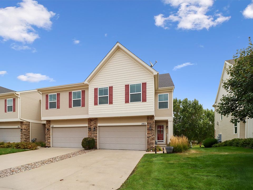 Awesome 3 bedroom walk out END unit townhome, backs to green space, bike trail. This split foyer plan invites you with lots of windows, 12 ft ceilings in great room. Spacious kitchen with sliders to deck. 2 spacious bedrooms on 2nd level. Primary suite with walk in closet and 3/4 bath. Pride of ownership can be seen in this well cared for unit. Finished basement with 3rd bedroom and 3/4 bath. Total combined SF of 1942. The location couldn't be more perfect! Walk just a couple of blocks to Brookview Elementary school, Valley View Aquatic Center, ride the trails, 2 minute drive to Jordan Creek mall and several popular restaurants. See today!