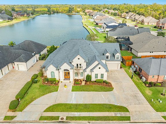 EXPERIENCE LUXURY WATERFRONT LIVING in this stunning 5-bedroom, 4 full bath, 2 half bath home that offers 5,012 sf on nearly half an acre. A grand entry with a soaring 20-foot ceiling sets the tone, leading to an elegant formal dining room and a private study with custom door and beautiful built-ins. The chef’s kitchen features premium finishes and opens to a spacious living room with incredible lake views. The primary suite offers a serene retreat with a recently updated en suite bath. Upstairs includes four generous bedrooms, three full baths, and a huge game room ideal for entertaining or just having fun. Step outside to a resort-style oasis with a custom outdoor kitchen and a saltwater pool with spa, perfect for relaxing and enjoying the outdoors. A rare 4-car garage completes this exceptional property. This recently renovated home is a rare find and offers a perfect blend of modern style and timeless comfort. Call today for a personal tour.