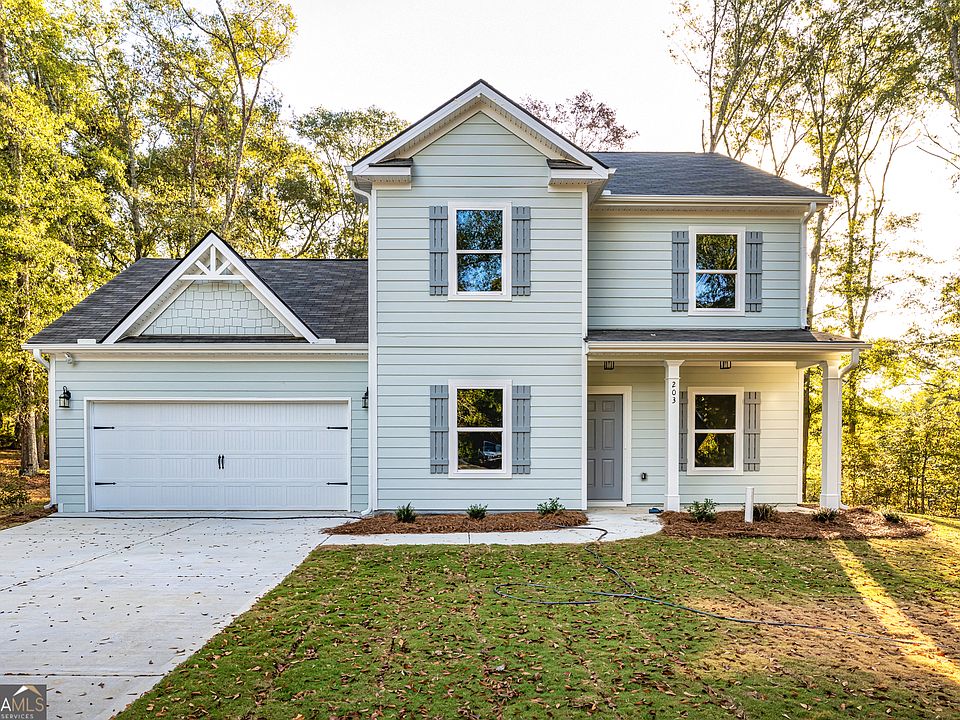 Our popular Abby plan features the owner's suite (+ laundry) on the main floor and this home is move in ready NOW! This homesite is on a small cul-de-sac street within the Orrs/Carver/Griffin school district. The Abby plan is a 2-story home with 4 bedrooms/2.5 baths and a loft (plus the owner's suite is on the main)! The kitchen overlooks the family room and has granite countertops, walk-in pantry, dining area, and includes dishwasher, range and microwave range hood. The main level owners suite features double sinks, garden tub, separate shower and a walk in closet. The upstairs loft area is large and has a window - great for teen space/office/playroom or study area. All 3 upstairs bedrooms have walk-in closets. Brushed nickel lighting fixtures. Flooring includes: carpet and luxury vinyl plank. Bathrooms have full height elongated toilets, laminate countertops and chrome finish plumbing fixtures. Exterior siding is Hardie Board. 2-car garage. Builder contributes $3,000 toward buyer closings costs when using a preferred loan officer, and an additional $1,000-$3,000 lender credit from a preferred loan officer should buyer qualify. Contact Christy today to find out more about our new homes in Griffin! Built by: Meredith Homes Inc. Total Electric. *We also have a drone fly through tour on youtube of this plan.