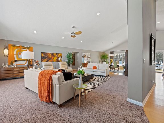 Get ready to fall in love with this custom-built midcentury modern home. This one-owner home features a open floor plan that is perfect for entertaining. The large living room has vaulted ceilings, a wall of windows and a modern gas log fireplace. The gourmet kitchen includes custom cabinetry, impressive refrigerator/ freezer, double wall ovens, gas cook top stove and a large island that is perfect for gatherings. Your friends will be envious of the spacious walk-in pantry with custom shelving that is directly off the kitchen. The dining area is directly adjacent to the kitchen and living area, and features maple hardwood floors with a wall of windows overlooking the back yard. The large master bedroom has an ensuite bathroom with double vanities and walk-in shower. Directly off the master bathroom is a large walk-in closet that has easy access to the laundry room. The home has two additional ample size bedrooms and a full main bathroom. This home has an expansive 3-car attached "dream garage" that offers plenty of room for your cars, shop space and storage. You can enjoy the back yard of the home while sitting on the covered back porch that is perfect for entertaining. The porch features an outdoor kitchen with granite counter tops, hardwired speakers, built-in sink and gas grill that is connected to the home's natural gas supply. The private parklike backyard has been professionally landscaped with beautiful flower gardens, stone walk ways ,water features, new custom landscape lighting and much more. The home has 6-inch walls, new tankless hot water heater, maple hardwood floors and additional custom features that are too numerous to list. ** Curtains on patio door and swag light reserved by Seller.