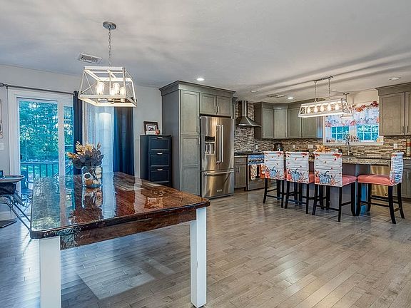 Raised ranch home in Desirable East Taunton neighborhood. This property offers the perfect blend of sophisticated style and comfortable living. Located just minutes from Schools, major highways, public transportation (T stations), and shopping. Open floor plan, showcasing gleaming hardwood floors throughout the main living areas. Beautiful stone patio, perfect for outdoor entertaining, fenced in yard complete with an inviting partial in-ground pool. Stunning kitchen, featuring custom cabinetry, granite countertops, tile backsplash, a convenient center island, stainless steel appliances, perfect for both functionality and effortless entertaining. The living room offers an inviting atmosphere, complete with a gas fireplace, for relaxing evenings. Additional features include second kitchen for potential in-law, owned solar panels to significantly reduce your energy costs, an oversized shed for ample storage, central air conditioning, and a central vacuum system for ultimate convenience.