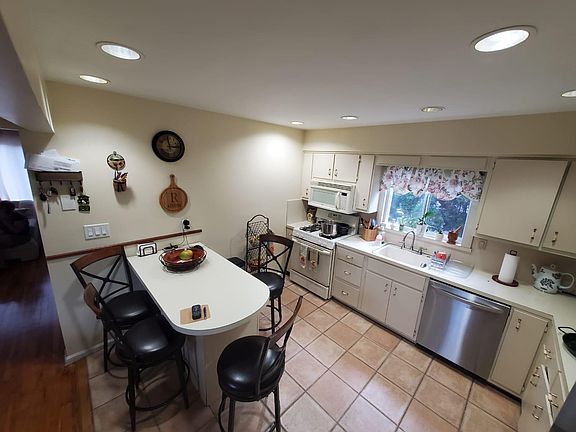 The first floor features 3 bedrooms, a formal living and dining room, and a large, well-lit kitchen with a breakfast bar, dishwasher, and abundant cabinet and counter space.