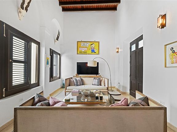 Live in the heart of Old San Juan in this beautifully designed and fully furnished second-floor apartment featuring soaring 17-foot ceilings that create a dramatic sense of space and light. Designed around an interior patio with expansive glass windows, the home is filled with natural light throughout the day, while original Spanish architectural details such as elegant arches blend seamlessly with an open floor plan for a unique and timeless design. The residence is finished with travertine stone floors, a European-style kitchen with modern appliances, and a built-in wine bar refrigerator, offering both comfort and sophistication. Quietly tucked away yet only half a block from Plaza de Armas, residents can enjoy immediate access to shops, cafes, restaurants, and even a SuperMax grocery store, making everyday living convenient and enjoyable. The apartment comes fully furnished for easy move-in, providing a stylish and functional space ideal for city living. Whether you're seeking a private retreat, a home base while working remotely, or simply want to experience the history and charm of Old San Juan in comfort, this rare rental offers the perfect combination of historic character and modern amenities.