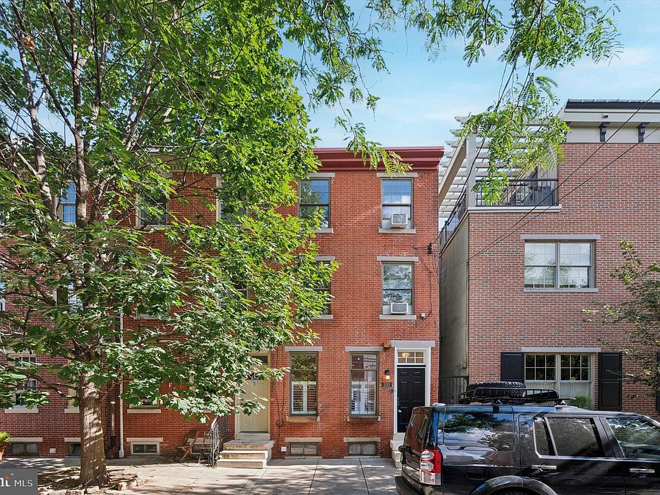 Welcome to 203 Carpenter Street, a beautifully maintained 3-bedroom, 2-bathroom townhome located in the heart of Queen Village, offering the rare convenience of TWO-car off-street parking, including a private garage. Step into a charming, custom-designed vestibule with a unique, rounded interior door that sets the tone for the home’s thoughtful style. Inside, you’ll find hardwood flooring, recessed lighting, and shuttered front windows that fill the open-concept living and dining area with natural light. The chef’s kitchen is a true highlight—perfect for cooking and entertaining—with top-of-the-line stainless steel appliances (including a Wolf gas range with hood and warming drawer), custom soapstone countertops, raw-edge wood shelving, clean white cabinetry, dishwasher, microwave, garbage disposal, and a stylish galley-style layout. A sliding glass door leads to a private deck and garage access, offering seamless indoor-outdoor flow. The second floor features two spacious bedrooms with unique character. The front bedroom offers two large windows, a generous closet, and a lighted wall cutout, while the rear bedroom boasts a stylish exposed brick accent wall. The full bathroom perfectly blends vintage and modern design, featuring a classic clawfoot tub, frameless glass shower, and sleek contemporary vanity. The third floor is dedicated to the private primary suite, complete with a spacious bedroom, decorative fireplace, large walk-in closet, and a beautifully updated bathroom with frameless glass shower, marble tile, and a modern, lighted vanity with ample storage. Additional highlights include a washer and dryer in the basement, extra storage with a utility sink, and a large outdoor deck ideal for relaxing or entertaining. Parking includes one spot in the private garage and another secured off-street space accessed via Hall Street—a true luxury in city living. Situated in Queen Village, just steps from Headhouse Square, South Street, and the Italian Market, and close to Spruce Street Harbor Park, Penn’s Landing, and local favorites like For Pete’s Sake, Lucky’s Last Chance, Federal Donuts, and Herman’s Coffee. With easy access to I-95 and public transportation, this is a rare opportunity to own a stylish, move-in-ready home in one of Philadelphia’s most vibrant and walkable neighborhoods. Schedule your private showing today!