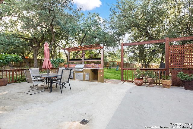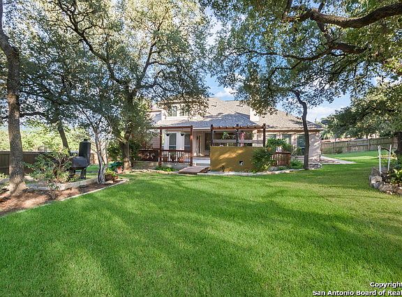 Wonderful 5 bedroom plan with dual masters on the first floor plus a study. All tile flooring downstairs except the study and 2nd master w/wood floors. Newer appliances and backsplash. Freshly painted! New Carpet! Kitchen has beautiful stone work, granite counters, an island and breakfast bar. Large master suite. Huge media/game room Remodeled secondary baths! Spacious bedrooms. Approximately 1000 sq ft concrete deck and outdoor kitchen. Flat useable half an acre with tons of trees NEW ROOF