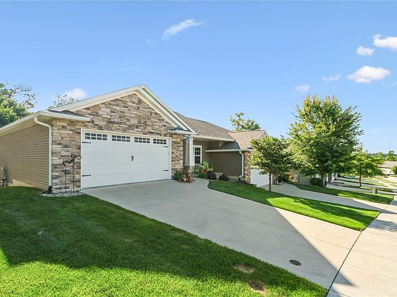 Welcome Home! This one-owner condo feels brand new and shows like a model—tastefully decorated throughout with thoughtful upgrades. Enjoy peace and privacy with a backyard that overlooks a wooded sanctuary frequented by deer, turkey, and birds. The stone front and inviting porch creates great curb appeal, while inside, the stone fireplace, tray ceiling, and accent colors add warmth and charm. The kitchen is a true showstopper—featuring top-of-the-line appliances, a large center island, tile accents, and soft-close cabinetry. The primary suite is designed for convenience with a spacious bedroom, dual-sink vanity, tiled shower with euro glass door, walk-in closet with custom shelving, and direct access to the laundry room. The walkout lower level offers incredible entertaining space: a large rec room with a wet bar and center island, a 3rd bedroom, and even a wine/safe room off the bar. Step outside to the covered patio for year-round enjoyment. Additional highlights include a newer 40-year hail-resistant roof, all appliances and TVs with custom mounts are included. A location just minutes from shopping. This condo blends comfort, functionality, and style—you’ll want to see it in person
