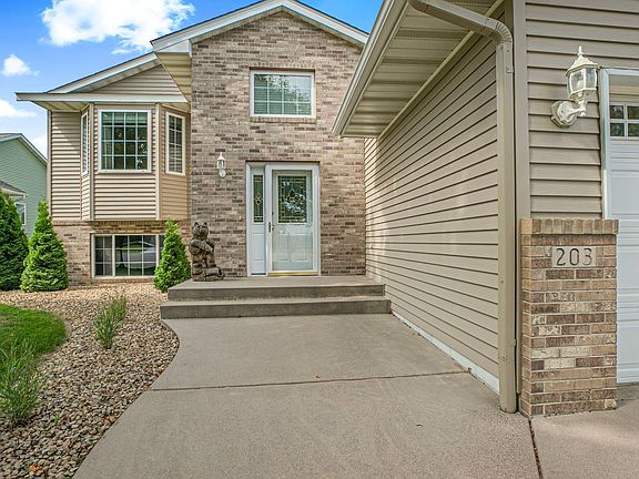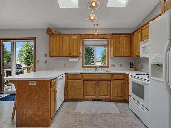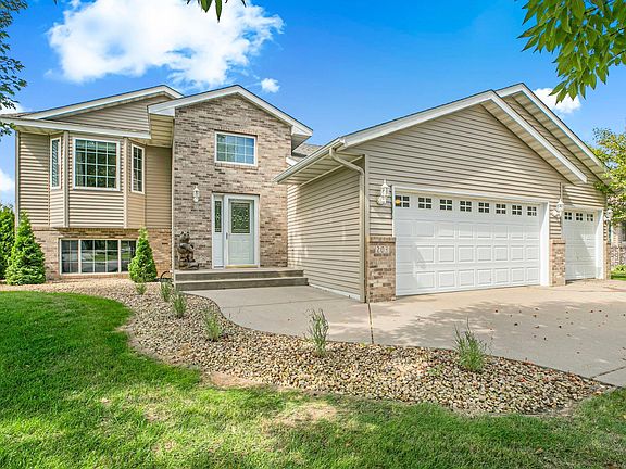 Welcome home to this beautifully maintained 4 BR, 2 BA property tucked into a quiet cul-de-sac with minimal traffic. Offering over 1,900 finished sq ft, this home is filled with natural light from skylights and features a freshly painted upper living room, newly cleaned carpets, and an inviting open concept layout. The primary suite includes dual walk-in closets, while the lower level boasts a large recreation room wired for surround sound and complete with a home theater system included in the price. Enjoy updated comfort and peace of mind with a **new roof (2023), steel siding (2012), added deck (2007), washer/dryer (2018), and new furnace (2024).** Additional highlights include a 6' whirlpool tub, walk-in closets, and a fully fenced backyard with mature trees for privacy. Set on a .38 acre lot, the yard is spacious and shaded, offering multiple decks for grilling, relaxing or entertaining. Located near the **Lake Wobegon Trail**, this home blends convenience, comfort and outdoor enjoyment. Immediate possession available - move right in and enjoy!