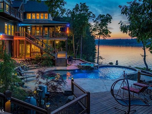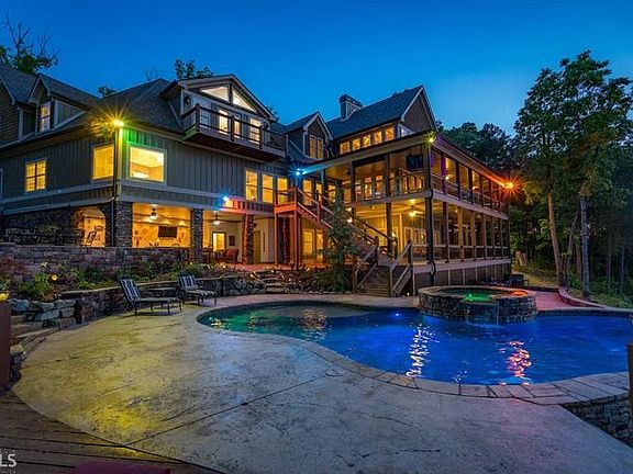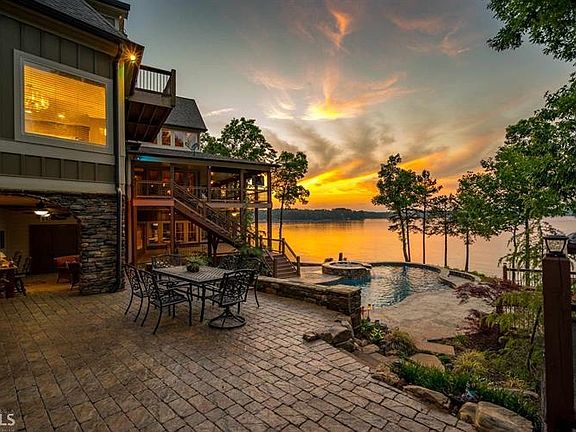 Over looking beautiful lake Hartwell, this estate rests on 1.32 acres. With over 11,000 sqft of living space is adorned w/ every detail imaginable. Coffer ceilings w/ copper inlay, hand planked hardwoods, custom cabinetry, granite counters, walnut wainscoting, 3 see-through stone FP. 7-8 BR, 8 BA and 3 half BA, a movie theater, 5 living areas, pool room, 3 kitchens, 2 laundry rooms, 3000 feet of covered porches, & a huge office overlooking the lake. Owners suite on the main level with slipper soaking tub and custom tile shower. Spectacular views from every room in the house. Outdoor bar, lounge area, pool & hot tub are great for entertaining. The long stone drive, patio & professional landscaping complement the villa's magnitude.