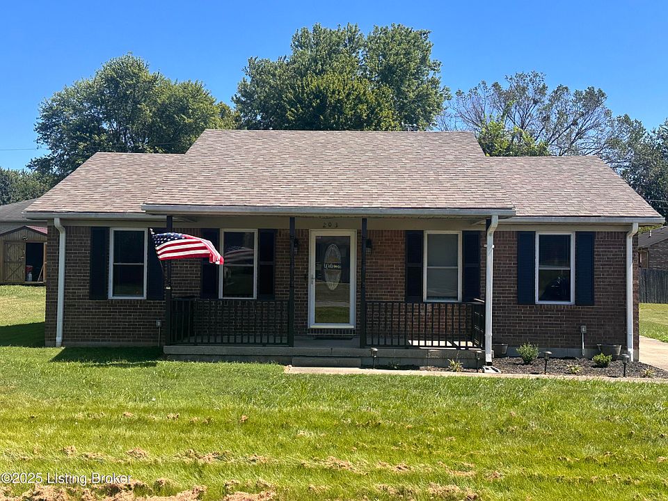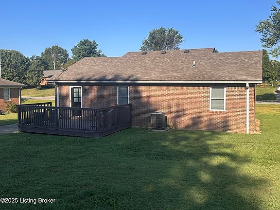 Welcome to this charming all-brick, ranch-style home built in 1993, offering 1,080 sq ft of well-designed living space, 3 bedrooms, and 1 bathroom. Just minutes from downtown Bardstown and 40 minutes from Louisville. The inviting living room flows seamlessly into a cozy kitchen with a sit-in dining area, providing ideal space for modern living. With a deck and porch overlooking the generous 10,454 sq ft lot, there's plenty of space to enjoy being outside. Located in the desirable Bourbon Downs subdivision with no HOA and a long driveway for parking, with a functional outdoor building. This brick veneer gem features a shingle roof and sits on a corner lot with excellent access to schools, shopping, and local amenities. The split-bedroom layout allows for flexible furniture arrangements and potential for personalization. it's practical, comfortable, and well-maintained. Whether you're a first-time buyer or looking to downsize in a friendly neighborhood, this home offers character in a prime Bardstown location.