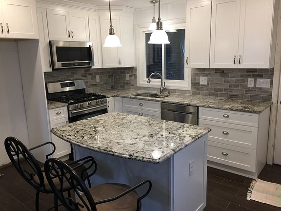 Stunning totally updated 4BR/2BA brick cape features open floor plan and high end kitchen w/ stainless steel appliances, solid wood cabinets, granite, plus center island. Huge Master BR w/ Walk in Closet. Dark hardwood floors throughout. So much is new! New gas heating, hot water heater, doors, newer windows and roof.