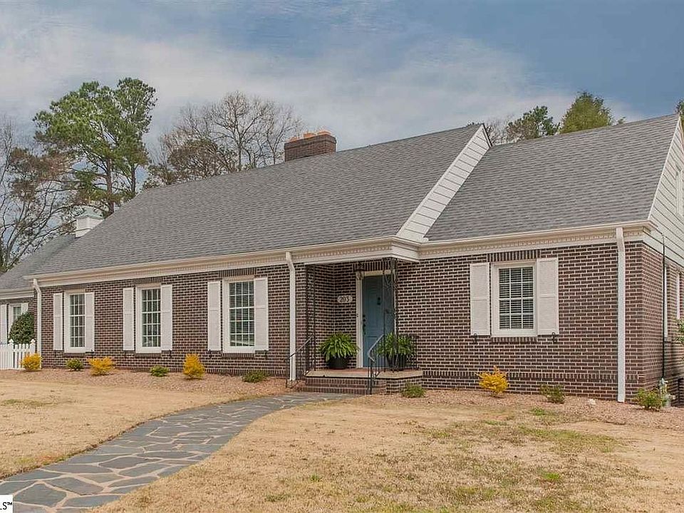 Here is your chance to grab a prime piece of property only steps from downtown Greer and loaded with character and charm. Let's start with the extras. Ideal downtown location as I mentioned, detached garage/living quarters that could be transformed into a separate rental opportunity, tons of storage options whether it be in the walk out basement area or the large attic area, extra wide driveway space for additional parking and outdoor grilling/sitting areas, stone walkway, front porch, stylish enclosed breezeway, and did I mention the character and charm... This great brick ranch home has pristine hardwood floors throughout, large living spaces, updated kitchen with granite counters, updated fixtures and stainless appliances, two fireplaces (one wood and one gas), great updated neutral colors, loads of crown and chair molding, built in cabinets and book shelving, walk in closets in both bedrooms, and an updated 1/2 bath in the second bedroom. NOW, let's talk a little about the separate living area in the detached house. This "tiny house" is partially heated and cooled and offers an awesome space that would be perfect for a recreation area for the kids, studio apartment, separate office space, sun room area, or a multitude of other options. The associated attached garage in this house is currently being used as an office space and has painted floor, built-ins, and a skylight. There is a separate loft area as well with wood floors and lots of natural light that serves as an additional bonus area. With all of these unique and added features, this great property has few equals.