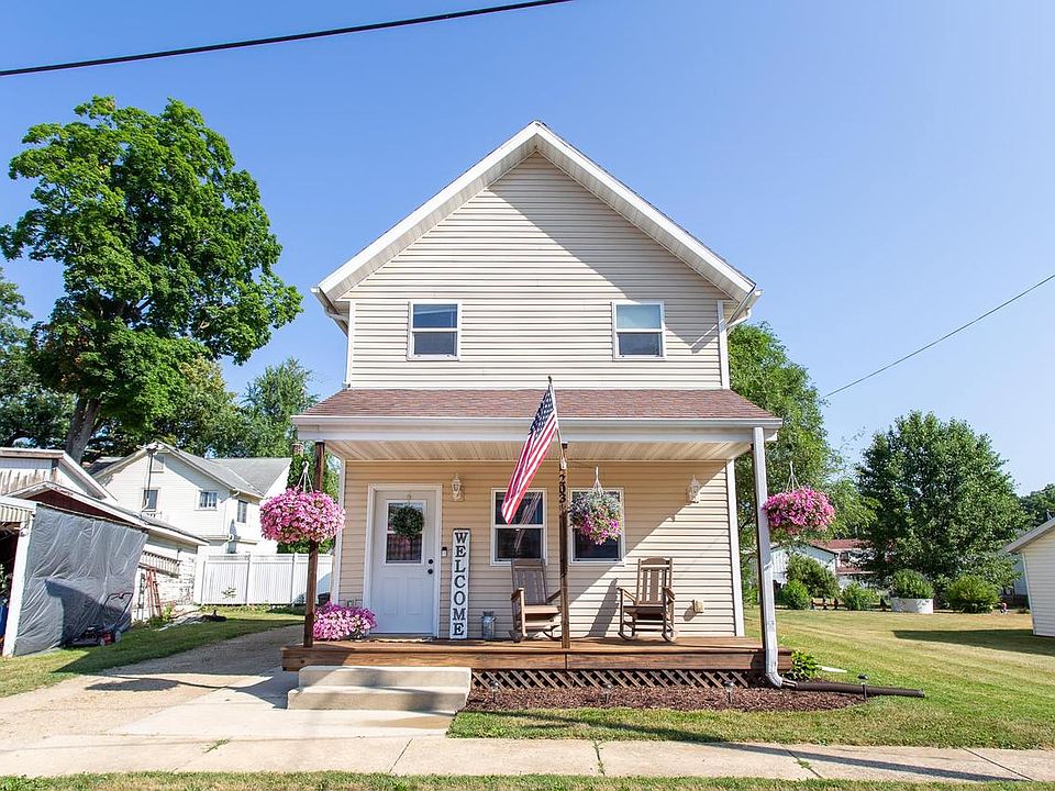 Move-in ready! This adorable 2 bedroom, 2 bath home has it all! You'll love the main floor with an open concept living room to the kitchen, a 1st floor laundry and mudroom, a full bath, and more. Upstairs, you'll find the primary bedroom, second bedroom, and another full bath! Outside, you can relax and enjoy the front porch or sit on the back patio area overlooking the fenced-in yard with a shed. There's also a 3 car driveway for plentiful parking. With updates like new flooring, windows, roof, heating, electrical, and more, this home is ready for you to call home! Located a quick walk to downtown entertainment!