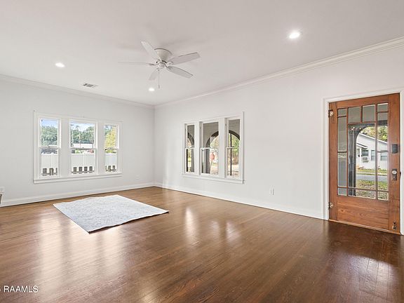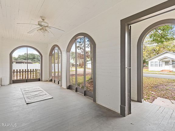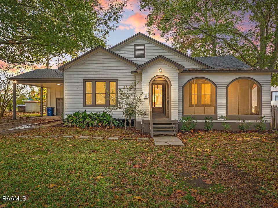 Welcome home to the beloved ''Pioth House,'' where the spirit of 1918 meets the comfort of modern Louisiana living. Right in the center of Church Point, this charming 3BD/2BTH home is only minutes from Rod's Supermarket, Sunny's Fried Chicken, and both Church Point Elementary and High School. Surrounded by gorgeous oak and pecan trees, this cypress-wood beauty holds onto its history with preserved sanded and finished floors, an incredible 150+ year-old wood accent wall, and a peaceful screened-in porch perfect for slow mornings or breezy evenings. The kitchen blends old and new with custom cabinetry, Dekton slab counters, Frigidaire stainless steel appliances with warranty, subway tile backsplash, a stainless farm sink, and a bright mix of pendant and recessed lighting. The primary suite is warm and inviting with refinished wood flooring. Step into the ensuite for true relaxation: custom tile floors, a Dekton slab vanity, a walk-in tiled shower, a 6-ft freestanding soaking tub, and a spacious custom-shelved closet. Recent updates include: HVAC, tankless hot water heater, roof, plumbing, and electrical of, which are approximately two years old, offering peace of mind. Located in Flood Zone X and positioned right on the Church Point parade route, the home's large historic windows make parade days unforgettable. And with I-10 less than 10 minutes away, convenience meets charm in every direction.
