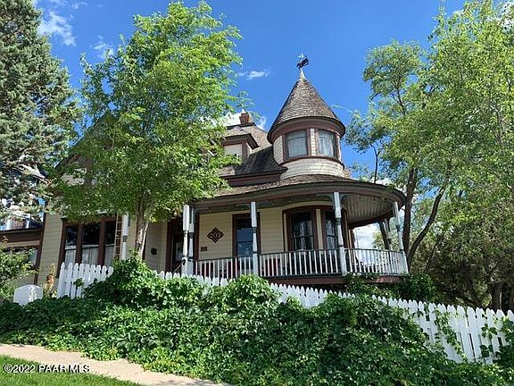 Once in a generation opportunity to own the most iconic Victorian overlooking Courthouse Square in historic downtown Prescott, Arizona. With Business General zoning, 7 parking spaces and ADA-compliant lift, ramp and bath, the Marks House makes the perfect vacation rental, professional office, inn, single family or group home. Listed on the National Register of Historic Places which keeps taxes low. The home is sometimes displayed prominently on the City's downtown banners and on many magazines and historical publications. Formal gardens framing the front yard lead to a veranda that curves around the front and side offering big views of Thumb Butte and Granite Mountain, and the best views available of Prescott's historic courthouse. The five bedroom, four bath landmark with a round turret