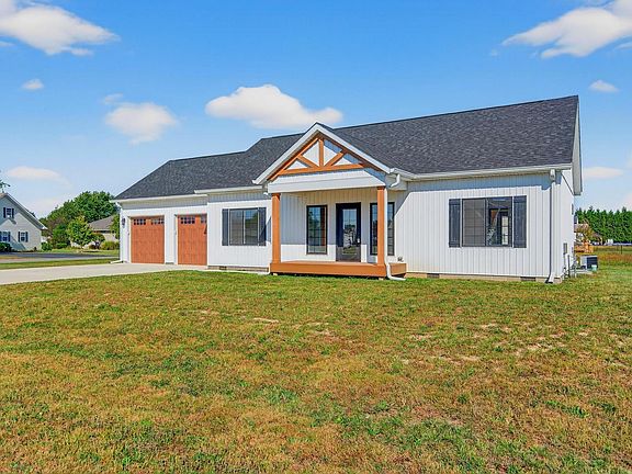 Brand New Construction! Oak Hill ~ Eagle Estates! Sleek Attention to Detail Finishes Throughout! 2 Bedrooms & 2 Full Baths. Fabulous Corner Lot Location & Excellent Modern Farm Curb Appeal! Soaring Vaulted Ceilings & Comfortable Open Concept Floor Plan Showcase the space. Great Room/Kitchen Combo. Luxury Vinyl Plank Flooring & LED Recessed Lighting. Kitchen is a showstopper with center island, pendant lighting, granite counters, SS Appliance Pkg that remains & single bay farm style sink. Walk-in Pantry. Split Bedrooms w/ Barn Style Sliders. Owners Retreat features walk-in closet, huge linen area, & adjoining bath. En Suite bath w/ dual sink vanity & walk-in/wrap around ceramic shower, also exterior access door. 2nd Bedroom offers adjoining bath. Separate Laundry/Mud Room. Oversized 24x24 Attached Two Car Garage w/ double doors & attic storage. Front & Rear Porches are covered with composite decking. Must See! Custom Designed w/ luxurious finish work. Adjacent Lots are available for purchase. Low Maintenance Living Awaits!