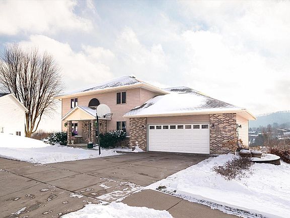 A former Parade of Homes winner with space, craftsmanship, and views that don't disappoint. This 4-bed, 3.5-bath La Crescent home offers 3,886 sq ft of solid quality--hardwood floors, a stately fireplace, and a walkout basement for extra living space. The main level includes a welcoming wet bar and a practical home office. The primary suite stands out with a cozy sitting area and a true on-suite retreat featuring double sinks, a spa tub, and a walk-in shower. A two-car garage and a well-planned layout finish off a home built for comfort and longevity. Double oven, gas cooktop and lots of storage throughout. Enjoy sweeping views of the bluffs and the Mississippi River Valley from inside or out.