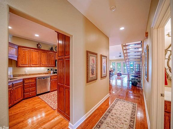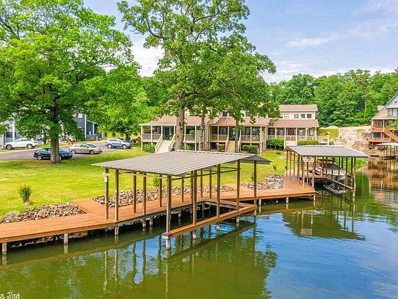Beautiful views from the covered deck. This walk-in level Townhome has 45 ft. on Lake Hamilton! This spacious home offers beautiful designer finishes throughout! Open concept & high ceilings. Fantastic kitchen space with high end appliances, custom cabinetry with granite counter tops. Has covered boat slip with lift and electric and water at dock. In great central location just 5 minutes to shopping and restaurants. Don't this great buy!!