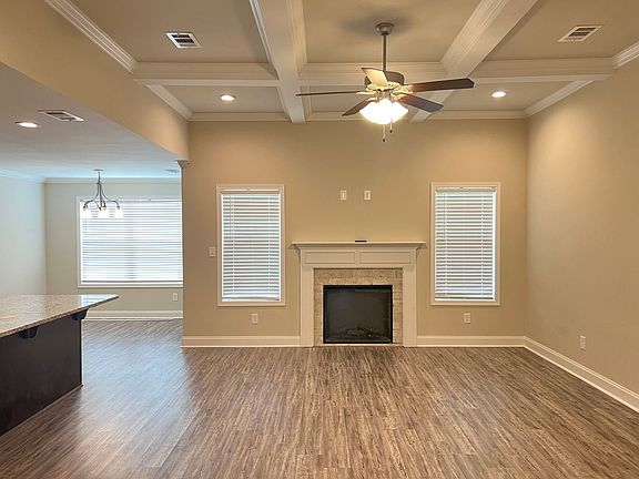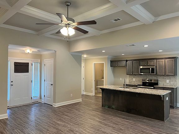 Exquisite 4BD/2B Home in Georgian Walk. Granite Counters throughout, LVP, Carpet & Tile flooring throughout. Open floor plan with Large Kitchen Island & Custom Cabinets. Coffered ceilings in great room with electric fireplace. Fridge, Washer and Dryer are included. Relaxing Covered Porch overlooking a Spacious backyard & Privacy Fence. Totally electric and Landscaping is included. No Pets please.