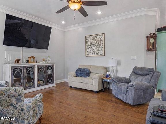 Discover a beautifully maintained, custom-built home tucked into a quiet Youngsville neighborhood--packed with features that are hard to find at this price. Inside, the open and inviting layout features rich wood flooring that carries through the living, dining, and bedroom spaces for a warm, seamless feel. The spacious living area flows effortlessly into the kitchen and dining, creating the perfect setup for everyday living or hosting.The oversized primary suite offers impressive space and flexibility for various furniture arrangements. Its en-suite bath includes dual vanities, a garden tub, a separate tiled shower, and a private water closet--your own relaxing retreat. On the opposite side of the home, the additional bedrooms are generously sized, and the built-in office nook provides an ideal spot for working from home.Step outside to enjoy a fully screened-in porch that opens to an extended patio--perfect for relaxing without the bugs. The backyard features an above-ground pool with a deck, plus a large 75x170 lot with plenty of room to spread out.For those who need storage or workspace, this one truly delivers. The expansive workshop is loaded with functional upgrades: the previous owners operated it as a daycare, so it's already equipped with versatile utility access, including a dedicated power line for a stove and 220-volt window A/C outlets along the exterior walls. Outside, the RV parking area is equally well thought out, featuring a covered pad with an RV dump line conveniently located beneath it. Additional covered storage provides even more flexibility for hobbies, equipment, or oversized vehicles.Extra upgrades include custom automated shades on the front and rear doors and in the living room--over $2,500 in smart-home convenience already in place.Homes with this combination of space, features, and value don't come around often. Schedule your showing and come see everything this property has to offer!