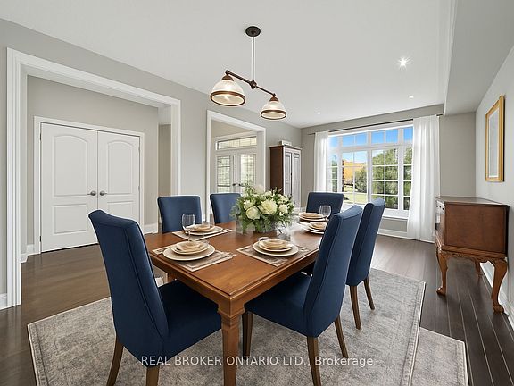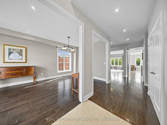 Welcome to your private oasis in family-friendly Angus. A stunning home that blends elegance, comfort, and resort-style living. Step inside through the grand entryway and you are greeted with rich hardwood floors and abundant natural light. The formal dining room sets the tone with its large window and timeless finishes, perfect for both intimate dinners and entertaining. Flowing seamlessly from here, the gourmet kitchen offers a chefs dream with stone countertops, a centre island, and a bright breakfast area overlooking the yard. The adjoining living room is a true retreat, featuring a cozy fireplace and custom built-in cabinetry that create warmth and sophistication. Perfect for cozy nights in or entertaining friends. Upstairs, each bedroom offers its own private ensuite bathroom. Two bedrooms feature spacious walk-in closets, while the third includes a generous double closet with ample storage. The primary suite is a sanctuary unto itself, complete with two walk-in closets, a spa-like five-piece ensuite, and serene views of the backyard greenspace. The fully finished walkout basement extends the living space with a large recreation room, a den with walkout to the pool, and a fourth bedroom alongside a full bathroom ideal for guests, extended family, or a home office setup. Step outside and experience your own resort. The backyard is the crown jewel of this property, backing directly onto greenspace where you can enjoy peaceful views and even spot local wildlife. A modern saltwater pool and lounge area create the perfect setting for both relaxation and entertaining. Luxurious, functional, and surrounded by nature, yet just minutes to parks, shopping, restaurants, and more.