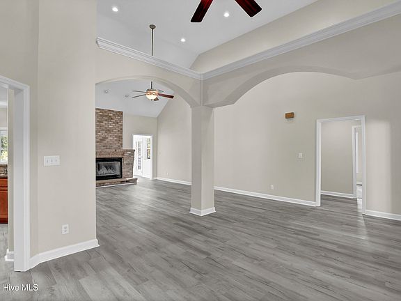 Welcome to this custom-built brick home with an open floor plan located on the 10th green of the Olde Point golf course. All one level living with a split plan with the primary bedroom and ensuite located on one side and 3 bedrooms and 2 full baths located on the opposite side of the home. The living room has a vaulted ceiling and a wood burning fireplace. There is a formal dining room as well as a sun filled breakfast room. Enjoy the heated and cooled sunroom for additional entertainment space. New flooring and fresh paint throughout. Two separate decks with built-in benches provide for outdoor living and overlook the golf course greens. One deck is prewired for a hot tub. The yard has some fresh landscaping and an irrigation system. Don't miss the bonus of having a 3 car garage and a paved driveway that can accommodate 6+ cars. The Olde Point Club is located across from the main entrance of the subdivision which has a clubhouse, pool and a golf course available when you purchase a membership.