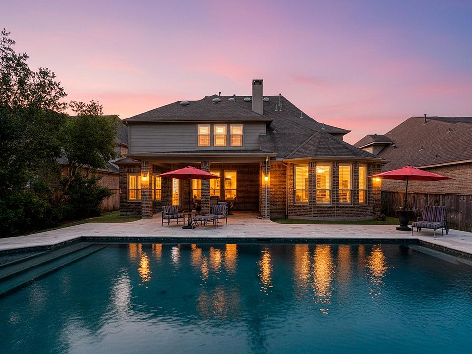 Sparkling poolWhole-house generatorFresh paintWater softenerExtended covered patioDedicated studyBay windows