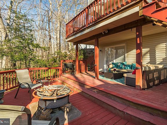 Almost One Acre Wooded Lot located on a Cul de Sac! This four bedroom home has it all plus amazing views of sunsets and nature from the three-level deck. Come home and feel like you are on vacation. The kitchen, baths and flooring have been upgraded with hardwood, tile, granite, stainless appliances, new backsplash, etc. The sun shines bright in the spacious family room with big windows and gas fireplace. A separate room located in front can be used as a dining room or office. The lower level offers a large rec room, full bath and bedroom. Walk out of the upper or lower levels to a deck for relaxing. This lot offers plenty of privacy in all seasons. Newer roof and HVAC system. The Gated Community has amazing amenities including swimming pools, golf course, playgrounds, basketball courts, soccer fields, tennis courts, marina, stables, community events, etc. Close to restaurants, retail, commuter lots and I-95. Don't miss this beautiful, well-maintained home.