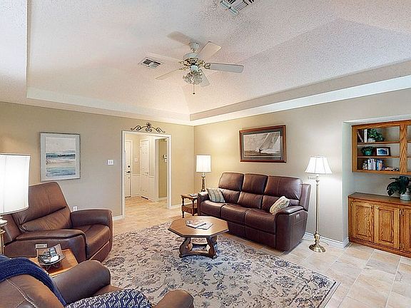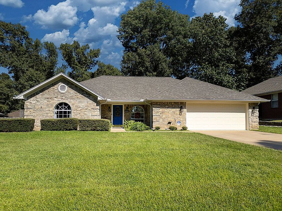 REDUCED BY $2,000!!! Spanning 1,956 square feet, this home offers living spaces designed for comfort as well as style. Step into this home and make your way into the large living area. The high ceiling and built-in cabinets and bookshelves with storage will grab your attention along with the cozy wood-burning fireplace. The kitchen features granite countertops, a large eating bar, and plenty of storage for all of your cooking needs. Natural light fills the interior from the double French patio doors. Adjoining the kitchen is the dining room. The split floor plan has the primary suite separate from the secondary bedrooms. The primary suite comes with raised ceilings and a walk-in closet complete with shelving and a built-in shoe rack. Inside the ensuite bath, you’ll enjoy a garden soaking tub, a separate shower, a new custom granite vanity with double sinks, shelving, and generous storage. On the opposite side of the home are two additional large bedrooms, each with two good-sized closets, which share a spacious bathroom. Added storage is provided in the bathroom, as well as in a hall closet with shelving and an entry-way closet. Furthermore, this home includes an extra room with closeted laundry hook-ups that can serve as an optional fourth bedroom, but could also double as an office/study/craft room, providing versatility to fit your lifestyle. The oversized double garage is highlighted by an insulated garage door with garage door openers, along with shelving along both sides of the garage. Extra room is provided in the garage to allow for a workbench as well as a refrigerator and freezer. A pull-down attic stairway leads the way to a floored-in attic. A storage room holds the 50 gallon water heater and also delivers more space for storage. All rooms feature tile flooring and ceiling fans with lights. The plantation blinds remain with the home. Step outside to discover a large fenced private backyard complete with a covered patio, perfect for outdoor gatherings and relaxation. This area was landscaped by Petty’s Irrigation and Landscape of Tyler and features an in-ground sprinkler and drainage system. Don’t miss this opportunity to make this beautiful property your home! Please call (903) 391-2287 to set up an appointment to visit this home!