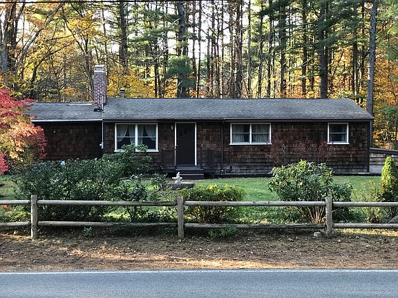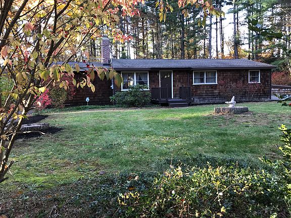 This charming, beautifully landscaped, tree lined property, with close to an acre of specious front and backyard for the family or pets to play! Built in 1950, this 3 bedroom, 1 bathroom home, offers 1,228 sq.ft. of space in the main floor with hardwood floors in living/bedrooms, multi sided fireplace, large family room off the kitchen, with an additional 1,372 sq, ft. of space in a partially finished basement. If looking for a starter home or a serene setting to retire this could be the perfect home situated within walking distance from 2 award winning golf courses, minutes from the highway, and just 20 minutes from Boston. Please call for a showing. Buyer to perform due diligence