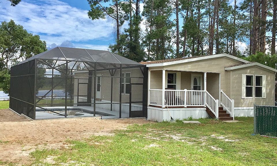 1,564 sq. ft. 3/2 LAKEFRONT beauty located on a low-traffic, dead-end street near the Putnam/Volusia border! Pride of ownership shows throughout in this impeccably maintained Palm Harbor manufactured home, set on 1/2 acre lot. Spacious, eat-in-kitchen features breakfast bar. Abundant cabinets, center-island, and ceramic tile floors. Gorgeous master bedroom has a large bathroom with dual vanities, separate shower and garden tub. Plentiful closets. Home also has a newer dock and fully-fenced yard, leading directly to a 60-acre spring-fed (private!) Silver Pond Lake, making this property a true fisherman's paradise. A screened gunite pool with spa adds to the value, together with a car-port. An additional 0.3 acre vacant woodland lot is owned by the same owner.