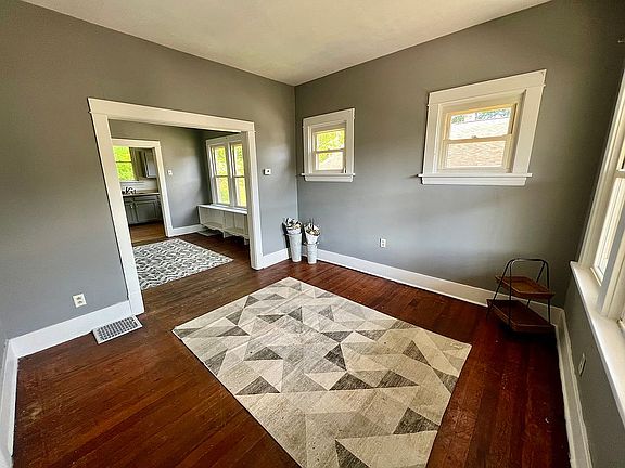 The home’s interior is equally impressive, with original hardwood floors adding warmth and timeless appeal throughout. The living space includes two oversized bedrooms, one bathroom, a cozy living room, dining room. Each room offers ample space and comfort, perfect for both relaxation and entertaining.