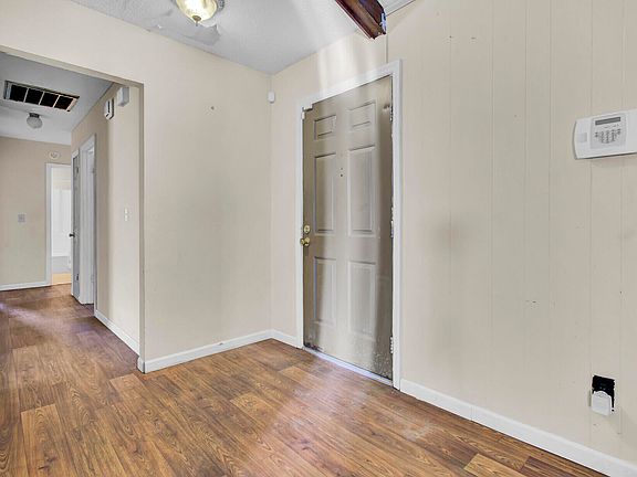NO HOA!! Open family room with wood beam accents on the ceiling. Wood burning fireplace. Kitchen offers dining area that overlooks large yard. Both bathrooms offer shower/tub combo. Large primary bedroom overlooks backyard. Separate laundry room. Bedroom/large flex space/partially converted garage- at the back of the home has walk in closet.