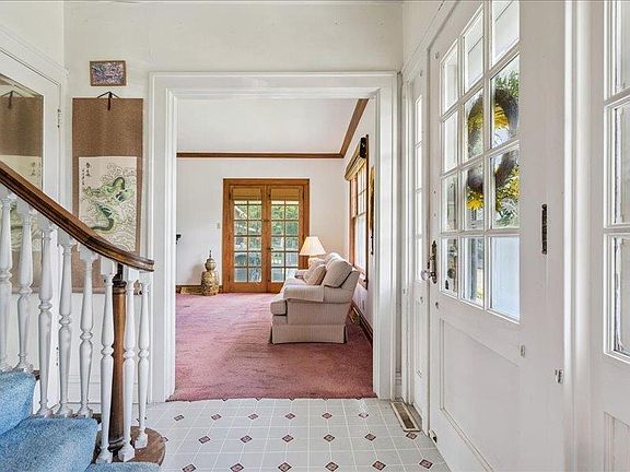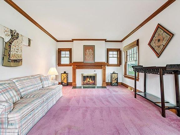 Charming & Unique! Well cared for home in a great neighborhood! Updated oak kitchen with plenty of cabinets, counter space, appliance garage. pantry, dishwasher, stove, refrigerator, & breakfast bar island. Good storage throughout. Large Dining room with plenty of space for a table and hutch and more. Spacious living room with fireplace, beautiful original crown molding, and wood trim, French doors and hardwood floors under the carpet. Bedrooms upstairs are generous with ceiling fans, closets and dressing room area. Bath with tile tub/shower and additional closet with storage. Two composite porches adds charm to this home on a convenient corner lot. Garage or parking space could be enlarged at side yard. Being sold "as is" to settle an estate.