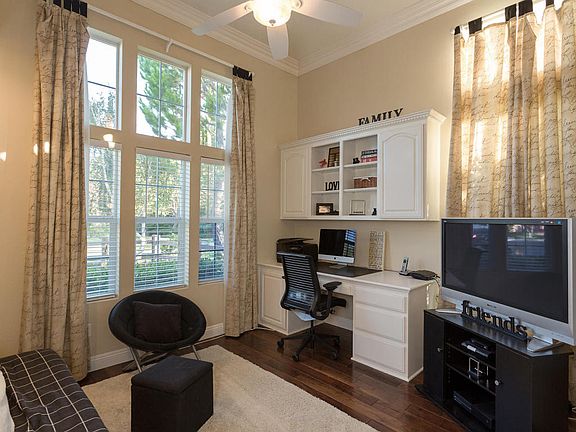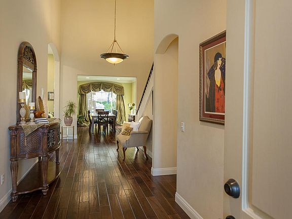 Welcome to this Entertainers Paradise! This gorgeous pool home in the guard-gated community of Long Canyon at Wood Ranch sits at the end of a cul-de-sac and next to a greenbelt. At over 3300 square feet, this home features 5 bedrooms and 4.5 baths, 2 downstairs bedrooms share a jack and jill bath. Guests make use of a separate powder room on the first floor. The second downstairs bedroom has a built-in desk and filing cabinets for storage. The perfect home office! A skylight in the entry lets in the natural light. There are new hardwood floors and baseboards throughout the downstairs, the stairway and upstairs hallway. The living room features freshly painted built-in floor to ceiling bookcases, a fireplace and view to the beautiful backyard. The kitchen boasts granite countertops, a large