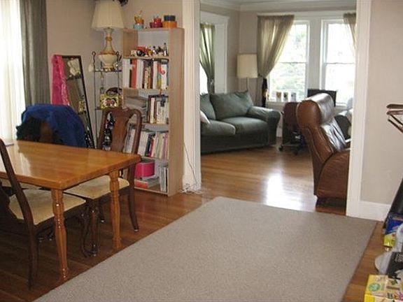 Available on 8/1. No fee, rental by owner. This is an excellent 2 bedrooms and 1 bathroom on the 1st floor of a multi-family (DUPLEX). It has a large dining room and separate large living room. Washer and Dryer machines are included in the unit so free laundry!. It also comes with a backyard porch to enjoy the sun and fresh air in the summer with a quiet backyard and fantastic view out the rear of woods. There is a fireplace for the winter to add extra warmth. The 1st floor unit includes 2 parking spaces. 1 garage parking and 1 additional parking in the driveway. Available on 8/1. Contact us now to arrange for a visit!