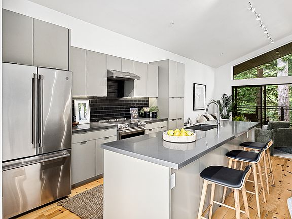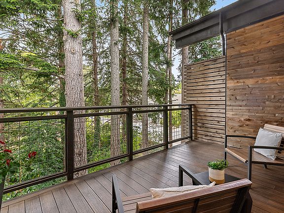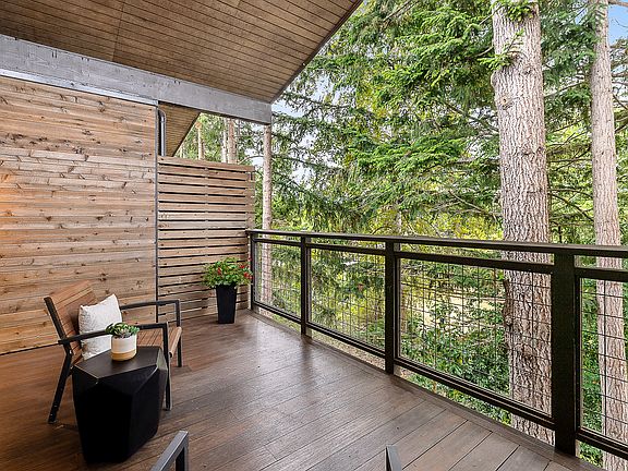 Discover the pinnacle of modern living in this stunning townhome, masterfully constructed with Insulating Concrete Forms (ICF). Experience energy efficiency, sound insulation, and unparalleled durability in this contemporary gem. This 3-bedroom townhome is in a fabulous location! Nestled in Madrona Way with easy trail and sidewalk access to parks, schools, shopping, dining, and the ferry. #4F is a 3-bedroom: 2 bedrooms with private baths on 2nd floor plus a studio with a private entry on the main. Features include wide-plank rustic pine wood floors and a modern spacious kitchen with quartz counters and stainless steel appliances. Covered deck extends the living space and faces west, capturing the evening sun. Can be used for short-term rentals!