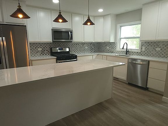 Totally remodeled 1,200+ square foot ranch home in quiet Crown Point neighborhood. Luxury vinyl plank flooring throughout the kitchen and main living area. Spacious kitchen features all new cabinets, new stainless steel appliances, quartz countertops and 8-foot island. Three carpeted bedrooms, two fully remodeled bathrooms, main floor laundry hookups. New furnace, new central air conditioning, new water heater, and new windows. 1200+ square foot unfinished basement. Walking distance to the Erie Lackawanna bike trail, shopping, and restaurants. For more information call or text John:219-805-6631