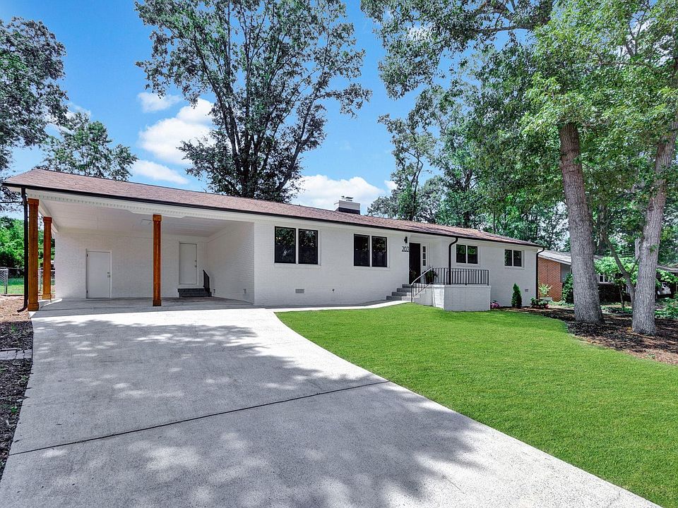 Welcome to your beautifully renovated brick ranch-style home! As you step inside, you'll immediately notice the meticulous attention to detail, from the newly refinished hardwood floors to the elegant accent trim in the dining room. The open-concept great room features a stunning fireplace with a rustic 9-foot mantel, perfect for cozy gatherings. The great room seamlessly flows into a gourmet kitchen, complete with a wine and coffee bar area, featuring a separate sink. This chef's dream kitchen boasts brand-new appliances, including an induction oven, a French door refrigerator, pot filler and garbage disposal. The custom wood cabinets are designed with tongue and groove soft-close drawers and doors, offering ample storage space. Adjacent to the kitchen, the laundry room provides additional storage space for your convenience. At the back of the home, you'll find a serene sunroom, ideal for morning coffee or unwinding after a long day. The home offers three bedrooms and two updated bathrooms, including a luxurious master suite with an en-suite bathroom featuring a beautiful tile and glass frameless shower—perfect for relaxation. A one year home warranty is included for your peace of mind. New updates in 2025 include: vinyl double hung tilt-in windows, doors, gutters, quartz countertop's, large kitchen island, HVAC system and ductwork, double sink vanity, tile surround in the hall bathroom, two toilets,and luxury vinyl plank flooring. The roof was replaced in 2020. Located in the peaceful Wellington Green neighborhood, this home is within a walkable, dog-friendly community. Enjoy easy access to downtown Greenville, schools, shopping centers, major transportation, and hospitals. The optional community amenities include an Olympic pool, playground, soccer fields, fire pit, and picnic tables. Don't miss out on this exceptional home.