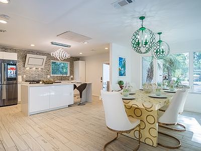 PRICED UNDER APPRAISAL! This modern one of a kind home is perfect for entertaining & offers an 18' Panoramic Glass Door Wall opening to the New SALTWATER POOL w/plenty of room for outdoor gatherings! The Chefs Kitchen boasts gas cooking, top of the line appliances, tiled back splash, double waterfall Quartz Island w/ bar, dual zone wine cooler, smart hub fridge & covered breezeway to the 2 car garage!. The Great room offers real wood flooring & floor to ceiling stacked stone fireplace. The Owners suite features a custom walk in closet w/shelving & make up table. The spa-like Master Bath offers double vanities, tiled shower, soaking tub, mirror w/ a TV & biddet! .This low maintenance home has it all! - .72 ACRE lot ideal for RV & Boat plus extra parking for family! CLOSE TO THE BEACH!