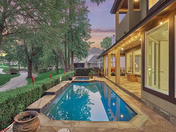 Gorgeous golf course dream home w/a pool is located on an ideal street with serene views. This 3BR/3.5BA custom built beautiful home has lush landscaping and mature trees. Expansive Gourmet Kitchen with SS appliances, tons of granite counter space, large island w/gas cooktop & tall cabinets for storage galore. The open floor plan is very inviting and flows seamlessly. Private Master Retreat has French Doors leading out to backyard pool & endless golf course views. Spa like master bath features dual sinks, jetted tub, sep. shower & walk-in closet. Sizeable secondary bedrooms have full bathrooms and spacious closets. One secondary BR is located upstairs w/balcony. Downstairs office/study. Extend your living area outdoors flagstone, covered patio & far reaching golf views. Perfect space for year round entertainment. Enjoy life, like you\'re on a vacation with access to the country club, THREE 18-hole championship golf courses, the yacht club, sports club, 24 hr manned gate.