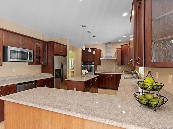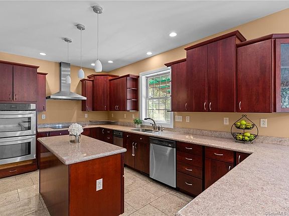 Wait until you see this 3,124sq ft Home located on North Anguilla Rd in Stonington, CT! This is a rare & exciting opportunity to own a magnificent custom colonial in a treasured location situated on 3 acres of land. Upon entrance, you will be immediately impressed by the vaulted ceilings w/ generous exposures of natural light highlighting the granite tile floor in to the Kitchen. The social Kitchen has ample cherry cabinetry, a grand center island, a walk-in pantry & a spacious eating area adjacent to the formal dining room and a half bathroom. Well maintained hardwood floors flow in to the living area w/ a wood burning fireplace and a wood stove. An interior balcony leads to three bedrooms, a full bathroom with a stand-up shower, a laundry room & the bonus room currently used as a Bedroom. The Owners Suite has a large dressing room, completed w/ a lavish bathroom, a stall shower, a jacuzzi tub & a double vanity. The finished lower level features a home office, a lounge and media space with a custom bar, a half bath, access to the utilities & plenty of additional storage area. You will be captivated by the over-sized paved driveway with a 2 Car Garage attached to the home and a detached 3 car Garage. For gracious living & joyful entertaining this home features a volley ball court, expansive patios overlooking the inground pool, central air, water softening system, an underground irrigation system, & much more. Schedule an appointment to preview this property today!