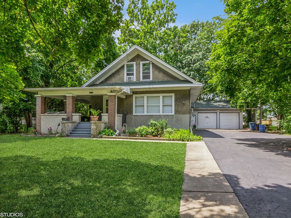 Welcome to this charming 1915-built home boasting a perfect blend of historical charm and modern updates. This 3-bedroom, 2-bathroom residence has been well maintained and thoughtfully upgraded, offering a delightful living experience. Upon entering, you are greeted by a good size living room with new laminate floors, ideal for relaxing evenings. The dining room with original built-in cabinets is just a step away making this large area perfect for gatherings. The kitchen features updated appliances, ample counter space, and plenty of storage, making meal preparation a joy. One of the standout features of this property is the abundance of storage space throughout, ensuring organization and functionality for all your belongings. Additionally, the extra large 1050SQ FT garage provides ample room for parking and storage, perfect for hobbyists or those needing extra workspace. Sitting on just over a 1/2 acre; the home is surrounded by a large front and back yard. Mature trees on the property give shade and privacy, and there is still plenty of room for outdoor activities. The large covered wrap around porch is perfect for large gatherings or just relaxing in the evening. Located in a desirable neighborhood, this home combines historical character with modern conveniences, making it a must-see for those seeking a blend of tradition and comfort. Schedule your showing today! New/updates include: Laminate flooring through most of first and second floor 2024, new washer/dryer 2023, main floor bathroom updated 2020, new roof 2020 with 35yr shingles, kitchen remodel 2019, new electrical wiring 2014, basement bathroom built 2017. 4 new A/C units and the current dining room window unit all stay with the home. Home has been well cared for but seller offering Home Warranty. Property is currently being rented month to month, please allow ample time to set up showings.