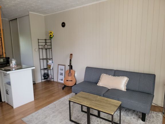 Move in ready, freshly painted, partially furnished upstairs end unit in a golf/lake community. This two room, one bedroom apartment can house 2 people and one child under 2 years old. It consists of a kitchen/living room combo and a bedroom that overlooks a pond. The apartment can be rented partly furnished or unfurnished. NO PETS. The community amenities are included in the rent and so is garbage pickup. This is a quiet building located near the pool and tennis courts. Off street parking, is not assigned. No laundry facilities in the unit or the community. An application is required including a credit report and income verification $25 fee per person over 18 non-refundable. Move in costs are 1 month rent, 1 month security, and 1 month realtor fee.