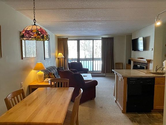 Welcome to your dream ski condo in the heart of Killington, Vermont! This beautiful 1 bedroom, 1 bathroom condo is located in the highly sought-after Killington Ski Resort community, just steps away from some of the best skiing in the region. With 670 square feet of living space, this condo boasts an open kitchen/dining/living room area, perfect for entertaining friends and family after a day on the slopes. The kitchen features stunning granite countertops and newer cabinets, providing plenty of storage space for all your cooking needs. After a long day of skiing, curl up by the cozy propane fireplace in the living room, which is sure to warm you up and create the perfect ambiance for a relaxing evening in. Step outside onto your private deck off the living room and take in the breathtaking views surrounding you. This condo is the perfect home away from home for ski enthusiasts and outdoor enthusiasts alike. Don't miss your chance to own this incredible piece of Killington real estate - schedule a showing today!