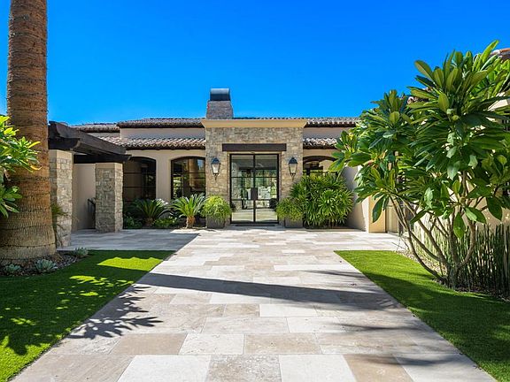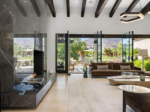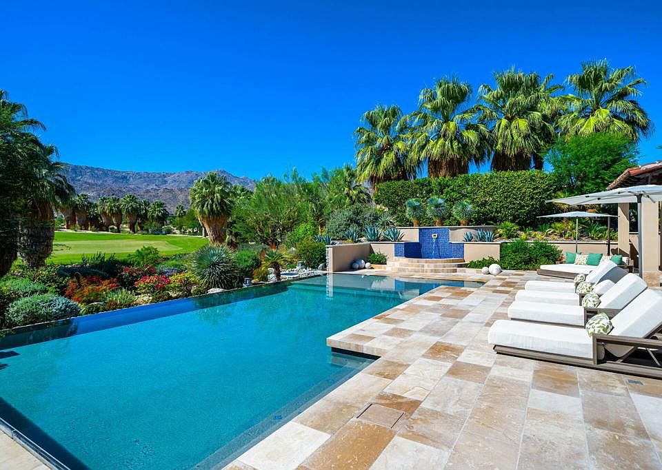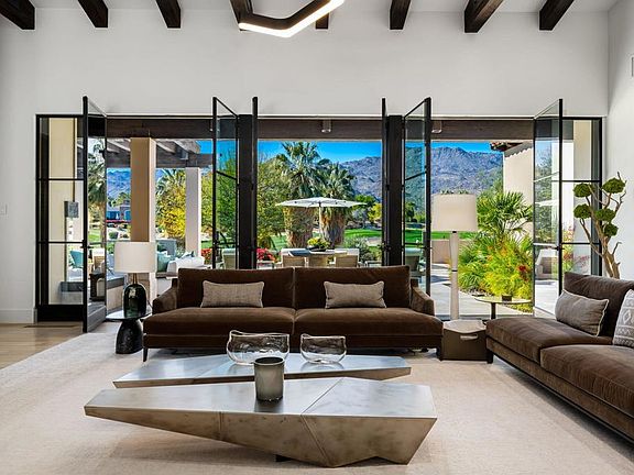 Welcome to this extraordinary custom estate, perfectly positioned along the 11th green of the Canyons course at the renowned Bighorn Golf Club. Recently reimagined with impeccable taste, no expense was spared and no detail overlooked in its transformation.A private gated courtyard leads to a dramatic great room crowned by a vaulted ceiling, where steel-framed French doors open to a limestone terrace and pool. From here, sweeping vistas of the Tom Fazio-designed fairways and the rugged San Jacinto Mountains create a breathtaking backdrop. The great room flows effortlessly into the dining room, anchored by an exquisite double-sided fireplace, and onward into a striking Bultaup-designed kitchen and family room. The gourmet kitchen, outfitted with top-tier appliances, features a warm banquette for casual gatherings.Offering five bedrooms, including a detached casita, the home is designed for comfort as well as grandeur. The Primary Suite is a serene retreat with its own fireplace, expansive dressing room, and spa-like bath featuring a limestone soaking tub and steam shower with both wall-mounted and rainfall fixtures. For entertainment, a custom-designed theater with an 11-foot screen, digital projector, and acoustically tuned interiors provides a cinematic experience.Spanning 6,617 square feet, the estate celebrates desert living with a vast outdoor sanctuary complete with a full kitchen, covered dining, fireplace, television, pool, spa, and outdoor shower. Smart-home technology enhances the ease of everyday living, with custom furnishings, included per inventory, complete the offering.This is not simply a residence, but a refined desert retreat and exceptional home where architecture, luxury, and lifestyle converge. Bighorn membership available separately.