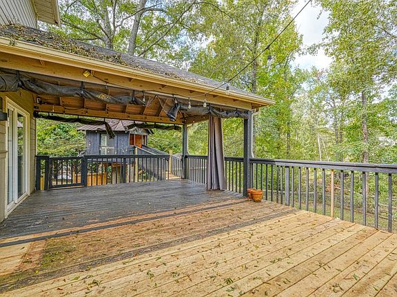 If you have been looking for space and privacy while still being close to town look no further, you have arrived! This 4 bedroom, 3.5 bath home with lots of character and charm is situated on a private 1 acre plus lot and has no HOA. You will absolutely love the open living space on the main floor with multiple ways to use the large rooms to suit your lifestyle. Whether you desire more dining or casual spaces, extra room for family or entertainment areas, or perhaps a home school area or office, this home leaves no need unmet. There is also a downstairs powder room accessible by the main living space and always a home buyer favorite feature. Right off the kitchen with its cozy wood burning fireplace nook you'll find a covered porch and large deck, perfect for grilling and hanging out with family and friends. On one side of the deck you'll find the catwalk that leads to a unique children's treehouse while on the opposite side a stairway leading down to the spacious backyard. Conveniently, there is primary bedroom with full bath on the main floor while the second floor boasts space for second primary bedroom suite or flex room with updated full bath. Two additional bedrooms and a 3rd full bath complete the upstairs. And if all this weren't enough throw in a newer HVAC unit (2019) and roof (2021), ample storage space over the 2 car garage and an outbuilding. This is a unique opportunity so act now and make 203 Pinebrook Dr your next address!