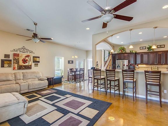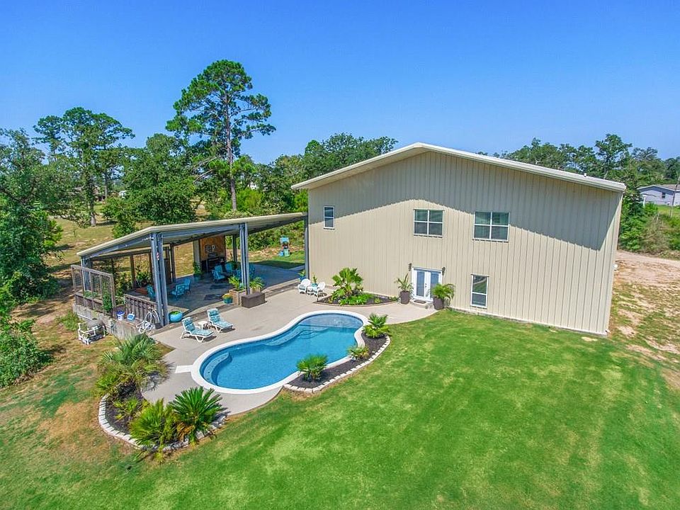 Must see! This 60'x70' Barndominium on 4 Acres features 3240 sq ft of living space with 10' ceilings and stained concrete flooring. Large entertainer's kitchen with Butler's pantry, marble tile counters, 2 pantries, beautiful solid wood custom cabinets and breakfast bar. Downstairs 4th bedroom/office has a built-in queen Murphy bed. Huge master oasis with 3 head shower and slate walls and floor, luxury jetted tub and extravagant master closet/changing room. Gameroom upstairs. RV concrete pad w/ all hookups, 1400 sq ft covered patio w/fireplace and custom in ground pool! Huge 2580 sq ft shop has steel roll up doors, electric lift and 100 amp box. Plus many more upgrades!